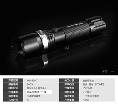 Yage 336C lườm pin lithium sạc pin tập trung đèn pin chiếu sáng ngoài trời cưỡi tầm xa đèn pin đội đầu siêu sáng 100w