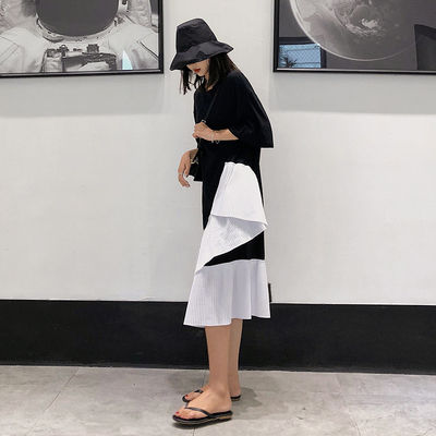 ◆ Yang Momo ◆ 2018 mùa hè mới cao eo khâu thiết kế năm điểm tay áo xù đầm phần dài đầm sơ mi trắng that eo Váy eo cao