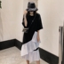 ◆ Yang Momo ◆ 2018 mùa hè mới cao eo khâu thiết kế năm điểm tay áo xù đầm phần dài đầm sơ mi trắng that eo