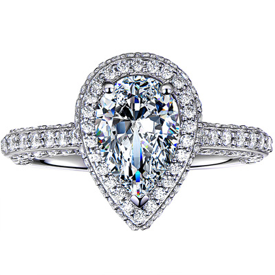 Yao Shi Series 2 Carat Pear Hình nhẫn kim cương sang trọng Deluxe Drop Diamond Ring Đính hôn Nhẫn đính hôn - Nhẫn nhẫn kim tiền pnj