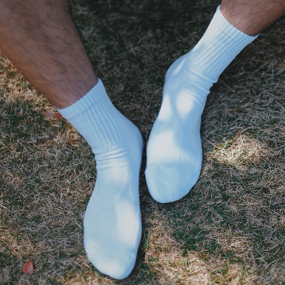 Yoyolab vớ trắng kiểm soát các mô hình cơ bản đơn giản màu rắn thể thao hoang dã thể thao vớ thoáng khí thân thiện với nhà vớ thông thường - Vớ thể thao tất thể thao cao cổ