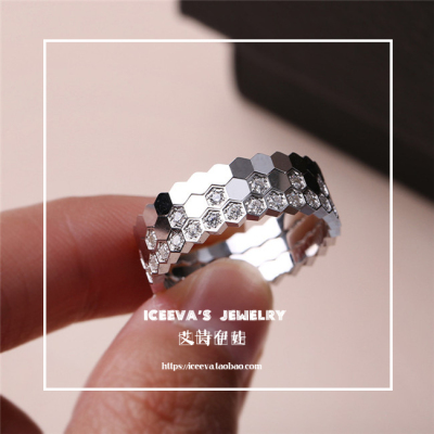 Zhang Yi với cùng một chiếc nhẫn tổ ong thực phẩm đơn giản Seiko 925 kim cương bạc góc hình lục giác đặt nhẫn nữ - Nhẫn nhẫn cưới cartier