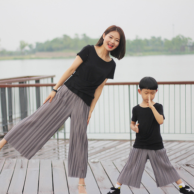 Zhe Sifan chính gốc cha-con mặc mùa hè 2019 mẹ và con gái nữ áo thun ngắn tay rộng chân quần dài 9 quần dài - Trang phục dành cho cha mẹ và con áo gia đình đi biển