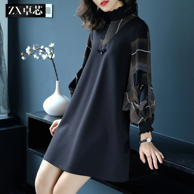 Zhuo core 2018 mùa thu và mùa đông quần áo mới dài tay khâu loose dress nữ kích thước lớn váy ngắn đáy Một từ váy 30123 váy chữ a công sở