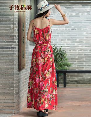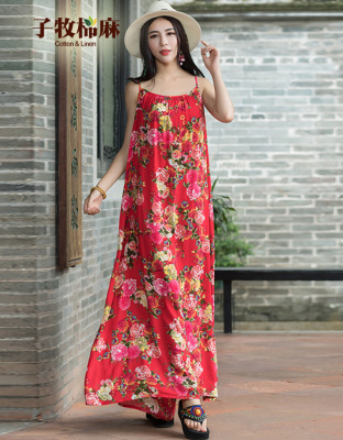 Zimu cotton và linen 2018 hè mới cho phụ nữ cotton và linen của phụ nữ áo gió quốc gia retro treo váy một từ con lắc lớn - A-Line Váy các kiểu đầm xòe A-Line Váy