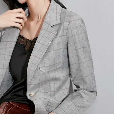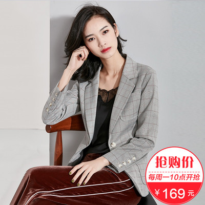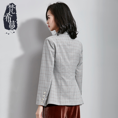 [169 nhân dân tệ mới] Van Gogh kẻ sọc nhỏ phù hợp với áo khoác Hàn Quốc ngắn tay áo dài mỏng thời trang công sở nữ Business Suit