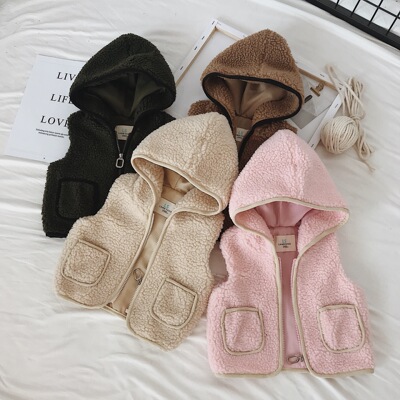 18 mùa đông mới phiên bản Hàn Quốc của bé trai và bé gái giả vest vest hai màu giả cừu vest áo khoác ba lỗ có mũ cho bé Áo ghi lê