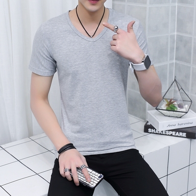 18 mùa hè nam cộng với phân bón XL áo thun tay ngắn chất béo Người đàn ông béo cổ chữ V màu áo sơ mi cotton nửa tay là mỏng Áo phông nam hàng hiệu Áo phông ngắn