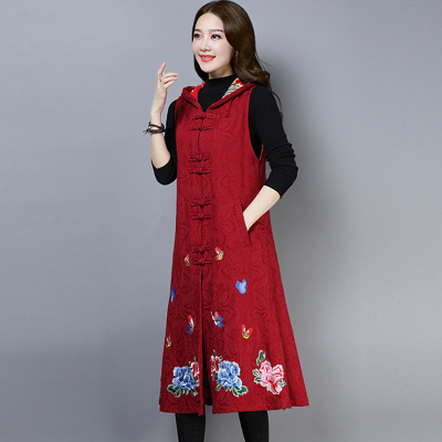 2018 thu đông mới gió quốc gia áo khoác nữ thêu retro dài tay áo cotton cotton jacquard 马夹 áo hoodie nữ cute