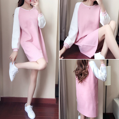 2018 thu đông mới váy cổ tròn buông lơi mỏng dày cộng với nhung dài đoạn giản dị váy đáy thủy triều đầm đi đám cưới váy đầm