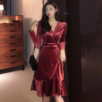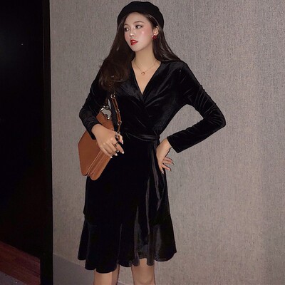 2018 thu đông nhung mới váy đáy váy trong váy dài cổ chữ V quây eo quần áo dài tay nữ váy công chúa cho bé váy đầm