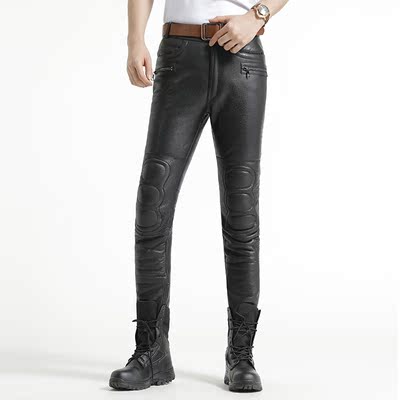 2018TOOXIU Quần da mới màu da đầu máy lông thú da một da dê nhập khẩu - Quần da quần jean ống rộng nam Quần da
