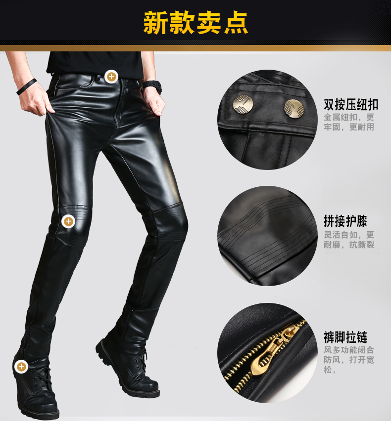 2019 quần da nam mới cộng với nhung dày Slim phiên bản Hàn Quốc của chiếc xe máy nhỏ chân không thấm nước là mùa thu mỏng và mùa đông mỏng - Quần da quần jogger nam