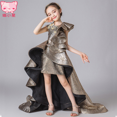 4 cô gái váy vàng công chúa váy 5 đuôi 6 mẫu catwalk trình diễn trang phục 6 cô bé váy sequin dạ hội 12 tuổi - Váy trẻ em váy xòe cho bé gái
