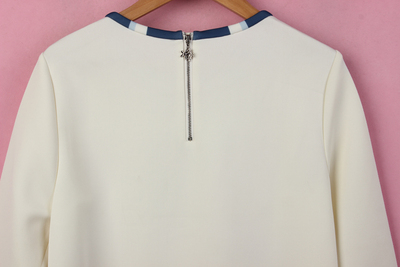 57X * 078 Phụ nữ kéo cổ cắt mùa xuân và mùa thu bộ giản dị của cổ tròn tay áo dài khâu váy quần váy
