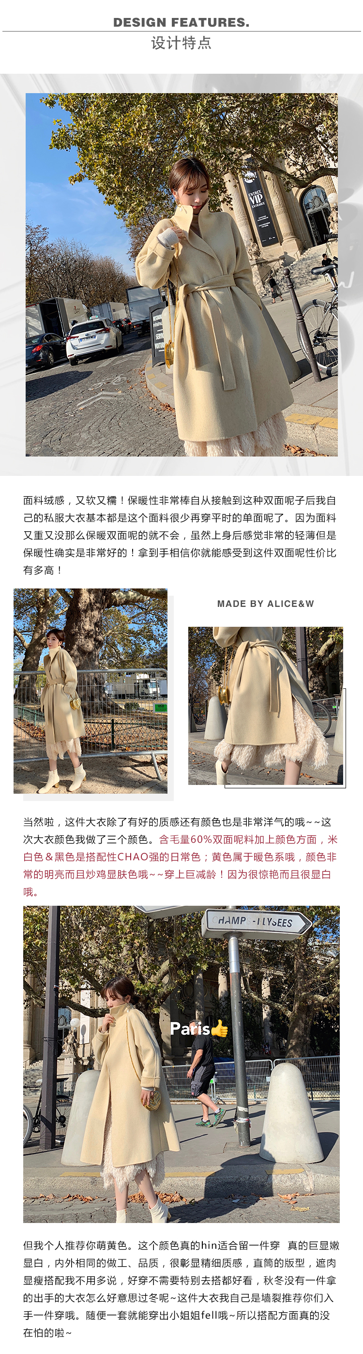 Alice W Huahua Home Tùy chỉnh áo khoác len hai mặt nữ dài phần phiên bản Hàn Quốc của áo khoác mới lỏng lẻo áo khoác nữ cá tính