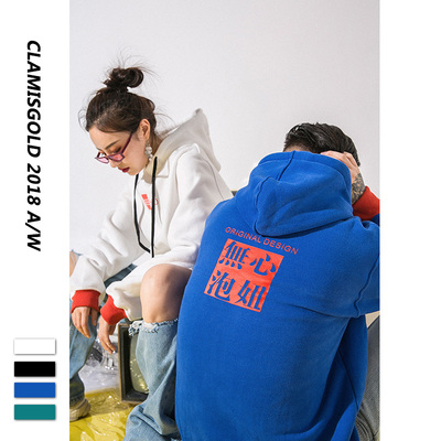 Ẩn mình trong thành phố mùa đông thủy triều cộng với nhung dày in chữ vui nhộn trùm đầu áo len nam và nữ mẫu đôi áo hoodie loang màu Áo len