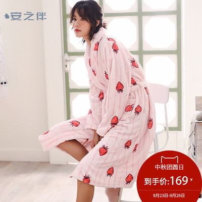 An với tay áo dài làm dày áo choàng tắm nhung san hô đồ ngủ phụ nữ mùa đông dễ thương dâu ngọt ngào flannel áo ngủ ấm áp đồ ngủ lụa Night Robe