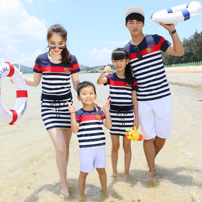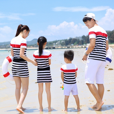 Áo ba lỗ cho bé 2019 mới Han Fan sọc mẹ đầm cotton ngắn tay áo thun XL - Trang phục dành cho cha mẹ và con mẫu áo đồng phục gia đình Trang phục dành cho cha mẹ và con