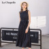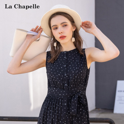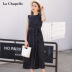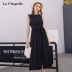 Áo dài cách tân mùa hè hoa không tay màu đen Pháp retro váy dài eo 10020317 - váy đầm đầm nữ