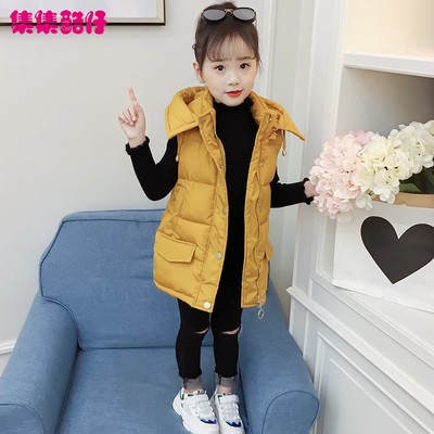 Áo khoác bé gái vest 2018 quần áo thu đông 2018 phiên bản mới của Hàn Quốc áo khoác trẻ em mùa đông phần dài quần áo trẻ em dài áo khoác ba lỗ có mũ bé trai Áo ghi lê