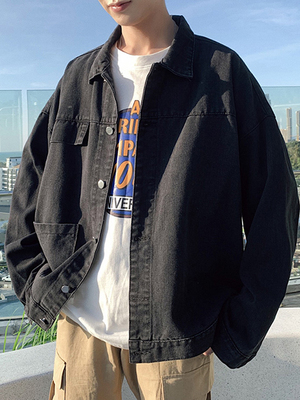 Áo khoác denim mùa thu nam màu đen xu hướng lỏng lẻo phiên bản Hàn Quốc 2019 mới mùa xuân và mùa thu quần áo mùa thu - Áo khoác đôi quần thể thao nam Áo khoác đôi