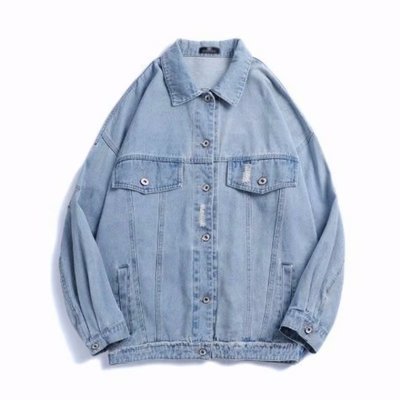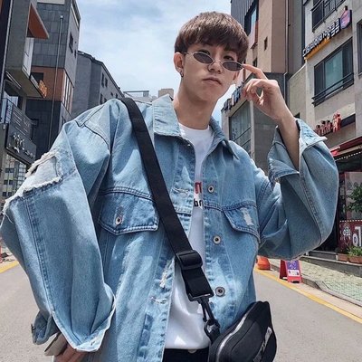 Áo khoác denim nam xu hướng áo khoác lửng lỗ phiên bản Hàn Quốc mùa xuân và mùa thu gió cá tính sinh viên trẻ trung mới - Áo khoác đôi áo bomber