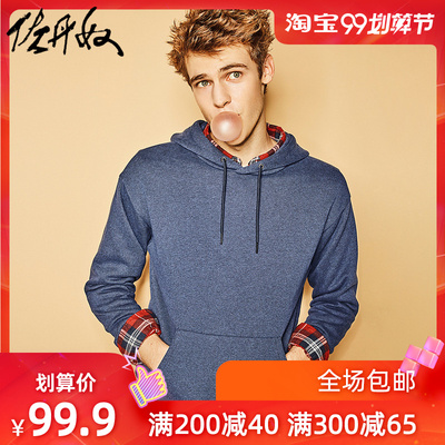 Áo khoác nam Giordano cộng với nhung kangaroo túi áo hoodie dài tay rộng rãi áo len trùm đầu nam dày 01082651 - Áo len hoodie trắng Áo len