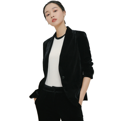 Áo khoác nhung vàng nhỏ phù hợp với nữ 2018 mới mùa xuân và mùa thu trang trí cơ thể nhung đen phù hợp với áo cánh bộ vest nữ quần lửng Business Suit