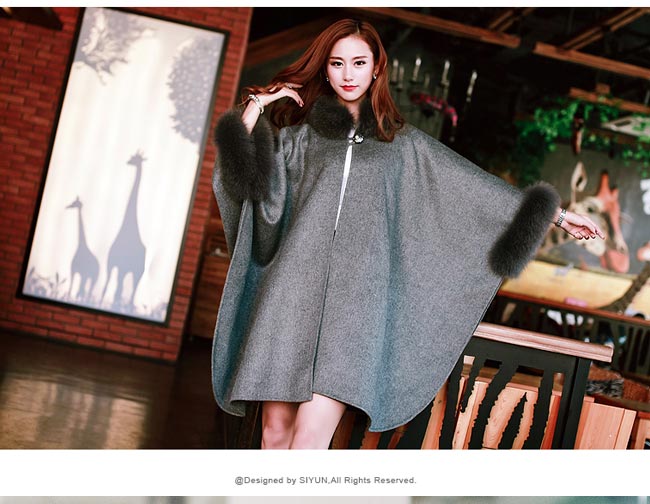 Áo khoác nữ mùa thu và mùa đông nước Anh rộng kích thước lông cổ áo hai mặt dài phần len áo choàng loại A áo bò nữ đẹp