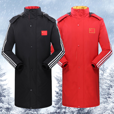 Áo khoác thể thao cotton Trung Quốc cho nam và nữ trong phần dài của quần áo cotton dày trẻ em tập luyện mùa đông phù hợp với áo khoác bóng đá áo phao nữ dáng ngắn hàn quốc Quần áo độn bông thể thao