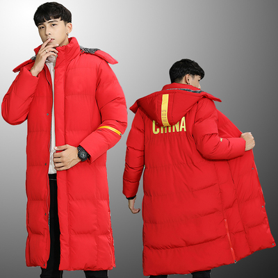 Áo khoác thể thao nam dài đến đầu gối cotton đội tuyển quốc gia trẻ em áo khoác cộng với nhung dày xuống mùa đông của phụ nữ áo phao nam cao cấp