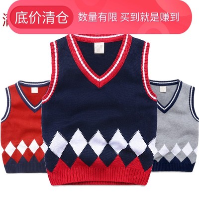 Áo len bé trai đan áo len cotton tinh khiết trong áo len bé trai không tay mùa xuân và áo len cổ chữ V mùa thu áo gile cho bé trai sơ sinh