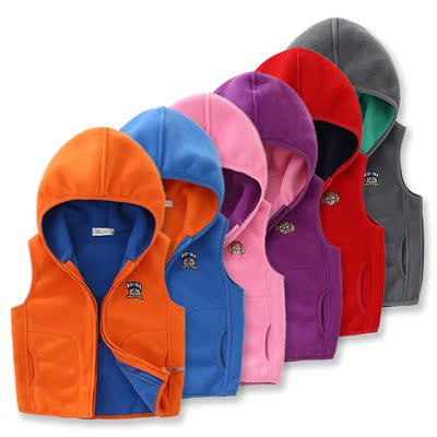 Áo len lông cừu cho bé trai và bé gái đội mũ trùm đầu 2018 mẫu mùa xuân và mùa thu cún con mùa xuân và mùa thu vest vest vai thủy triều ao quan tre em Áo ghi lê
