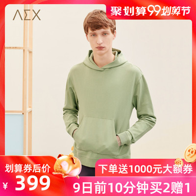 Áo len nam mùa xuân và mùa thu nam màu xanh lá cây cotton lỏng lẻo thể thao giản dị trùm đầu áo len áo len nam - Áo len hoodie tím