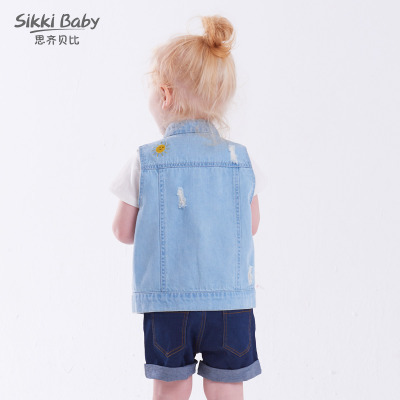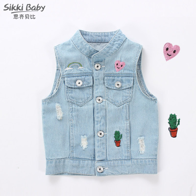 Áo len nữ cao bồi trẻ em mỏng trẻ em mùa xuân nước ngoài 2019 trẻ em mới mùa xuân và mùa thu - Áo ghi lê quần áo trẻ con