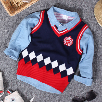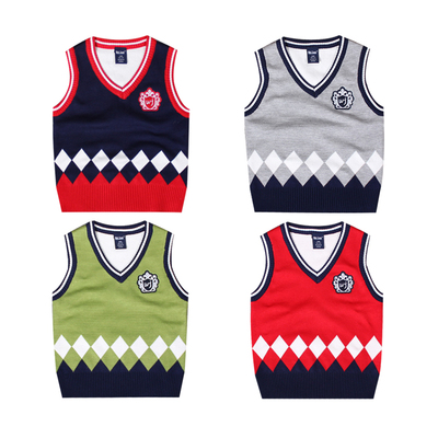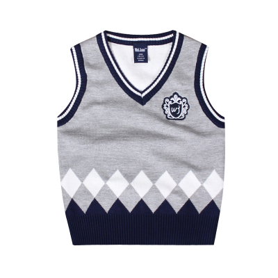 Áo len trẻ em nam mùa xuân và mùa thu mới bé trai áo len cotton trùm đầu bé đan áo đồng phục mẫu giáo áo gile bò cho bé Áo ghi lê
