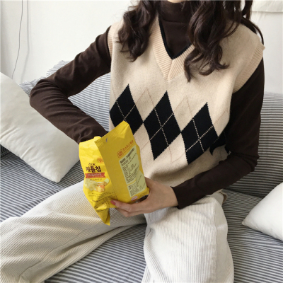 Áo len vest 2018 thu đông mới mặc phiên bản mới hình thoi Hàn Quốc áo thun cổ lọ dệt kim hoang dã áo parka nữ