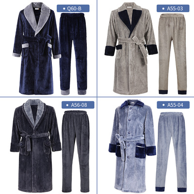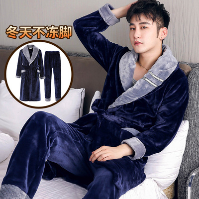 Áo ngủ nam màu đen dày nam flannel dài áo ngủ nam mùa đông san hô lông cừu áo choàng tắm nam áo choàng tắm đồ ngủ nam quần áo ngủ