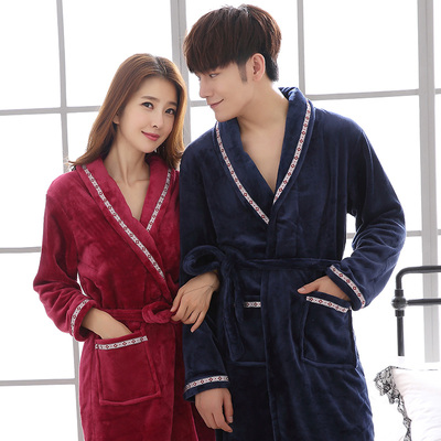 Áo ngủ nam mùa thu và mùa đông flannel vài bộ đồ ngủ áo choàng lông cừu san hô phụ nữ dày lên áo choàng dài dịch vụ nhà áo tắm nam nữ