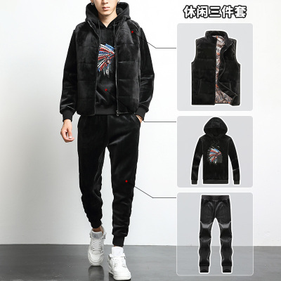 Áo nhung vàng nam cộng với áo len nhung dày nam mùa thu đông 2019 mới áo khoác thể thao giản dị ba mảnh - Áo len áo hoodie rộng