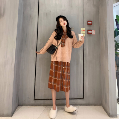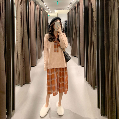 Áo nữ mùa thu 2018 mới retro kẻ sọc Pháp đầm đầm nữ + áo lười gió cổ chữ V váy hoa cúc