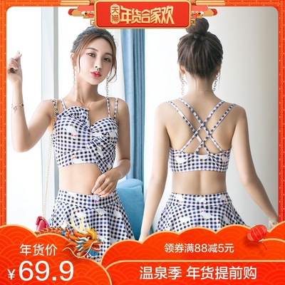 Áo tắm nữ hai hoặc ba bộ suối nước nóng nhỏ Hàn Quốc 2018 mới gợi cảm tụ tập áo tắm chia đôi bảo thủ bikini 2 mảnh màu đen Bộ đồ bơi hai mảnh