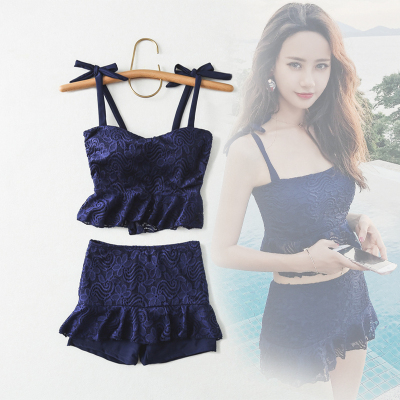 Áo tắm nữ hai mảnh xẻ hai góc phẳng bảo thủ che bụng học sinh Hàn Quốc mỏng manh gợi cảm bơi lội suối nước nóng áo tắm 2 mảnh cạp cao