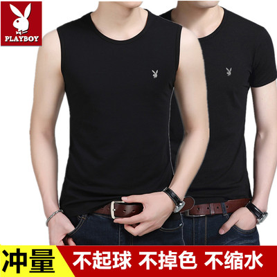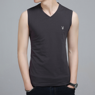 Áo thun cotton mùa hè không tay nam thể thao playboy vest rộng thấm mồ hôi thấm ướt cổ áo vest đáy áo không tay nam