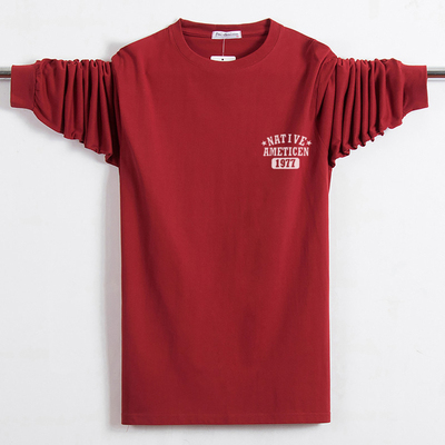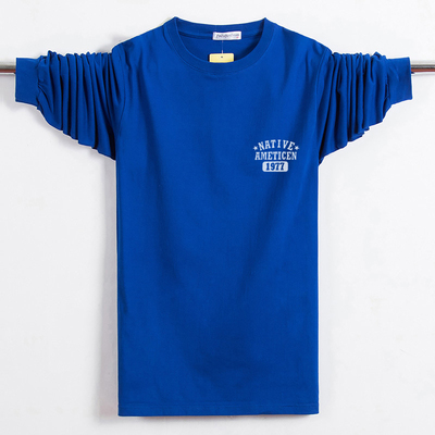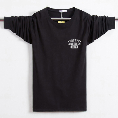 Áo thun nam dài tay mới cộng với phân bón XL cotton tròn cổ rộng áo sơ mi nam ngoài quần áo mùa thu quần jean nam rách Cực lớn