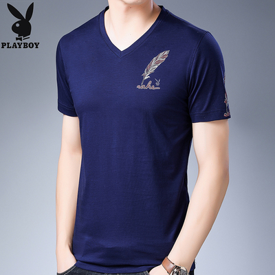 Áo thun nam tay ngắn Playboy Áo thun nam trẻ trung Hàn Quốc Áo thun cotton cổ chữ V nửa tay áo thun nam mùa hè - Áo phông ngắn áo phông nam hàng hiệu Áo phông ngắn