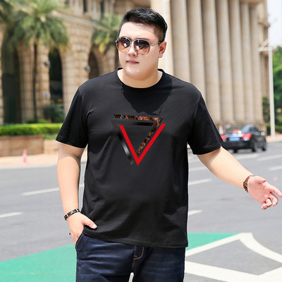 Áo thun ngắn tay nam thun cotton co giãn nửa tay cộng với phân bón XL vòng cổ lỏng lẻo áo thun teen áo polo lacoste Áo phông ngắn