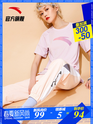 Áo thun nữ tay ngắn Anta 2019 mùa hè in chữ thể thao áo len ngắn tay thủy triều logo lớn trang web chính thức - Áo phông thể thao áo phông thể thao nam Áo phông thể thao