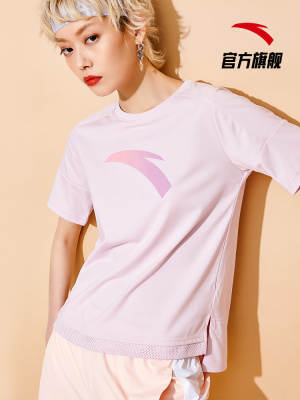 Áo thun nữ tay ngắn Anta 2019 mùa hè in chữ thể thao áo len ngắn tay thủy triều logo lớn trang web chính thức - Áo phông thể thao áo phông thể thao nam